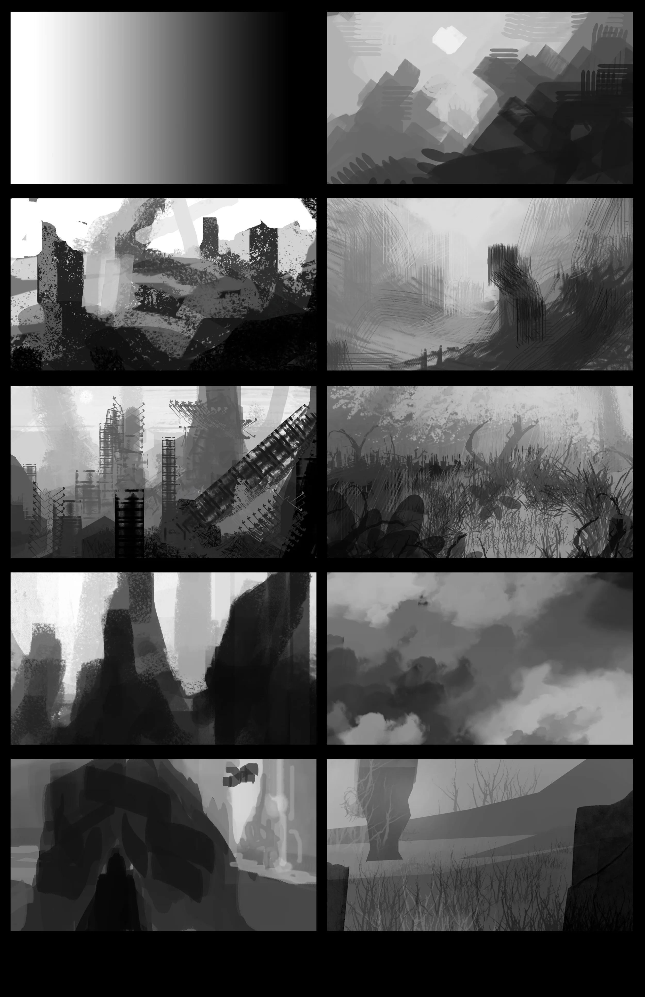 Here are some mouse only thumbnails I did today. I like this exercise because it is a great way to force yourself to stick to larger shapes. I waste a lot of time worrying about details early on.